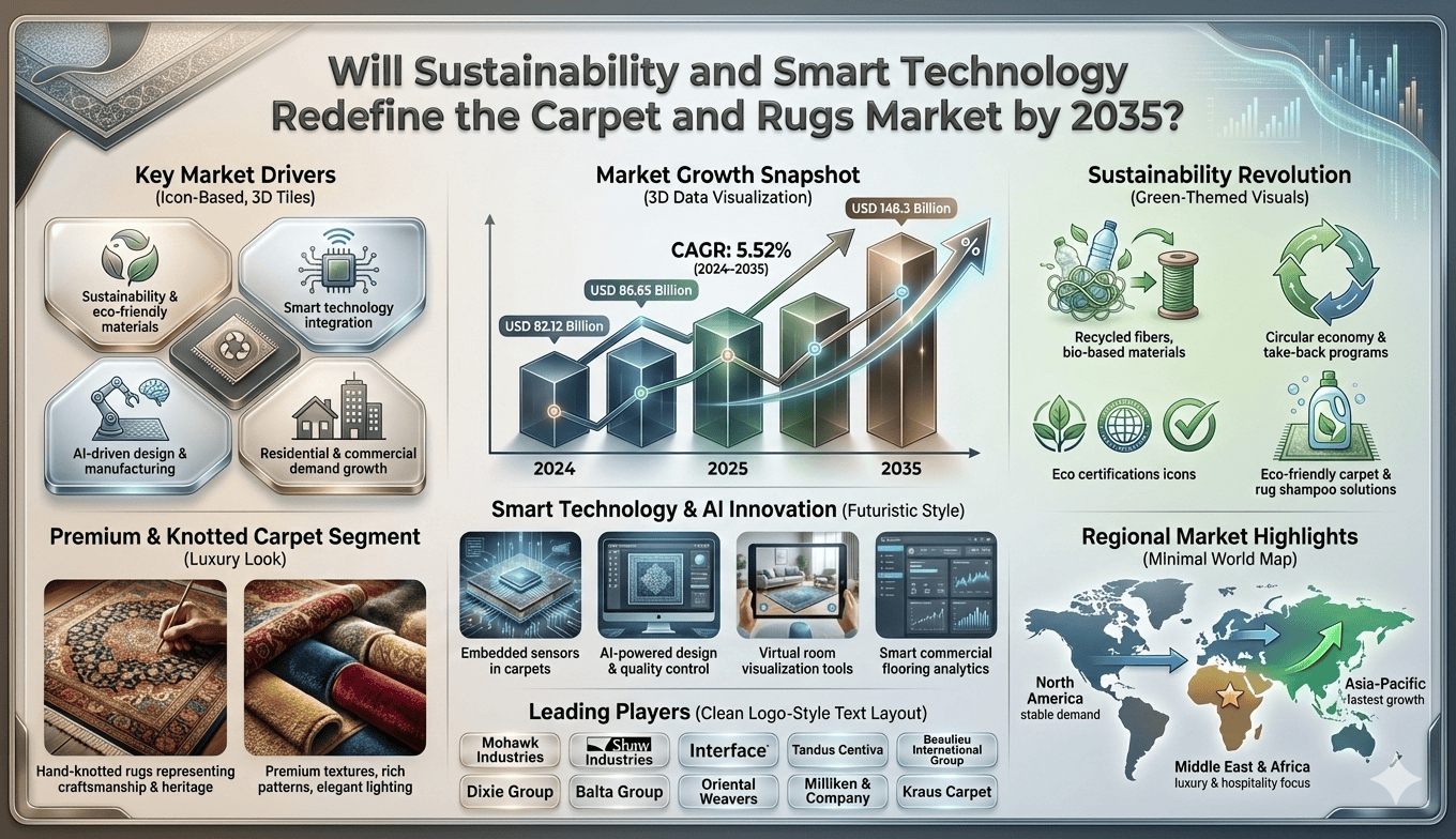 The global carpet and rugs market is experiencing steady growth despite mounting geopolitical pressures across key manufacturing and trade corridors. The market was valued at USD 82.12 billion in 2024 and is projected to reach USD 86.65 billion by 2025, expanding at a compound annual growth rate (CAGR) of 5.52% from 2025 to 2035. By the end of the forecast period in 2035, the market is expected to attain a valuation of USD 148.3 billion. This growth trajectory is driven by rising demand for sustainable flooring solutions, increasing renovation activities in residential and commercial sectors, and the integration of smart technology into textile products. However, escalating tensions in critical shipping routes and supply chain vulnerabilities pose significant risks to the market’s stability and cost structure.